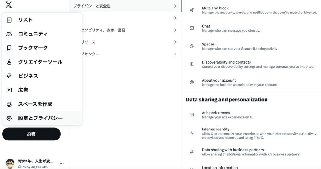 設定を開く: 「設定とプライバシー」を選択します。