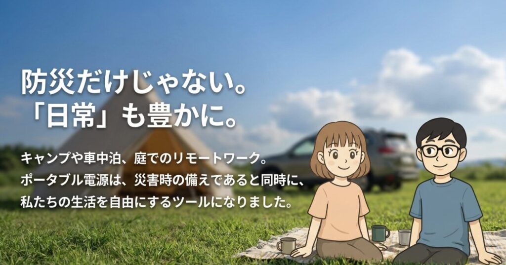 - キャンプ・車・災害時など、用途が固定されない人には「万能な安心感」がある