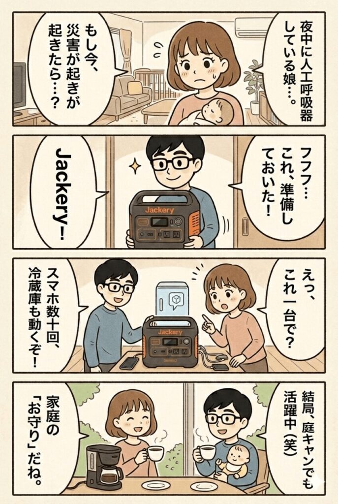 不安を減らすためにポータブル電源「Jackery」を導入しました。